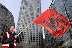In January 2009 a series of unofficial weekly protests by a shop steward and three workmates from the J4C campaign began, after they had been sacked by cleaning contractor Mitie at global insurance giant Willis in the City. The sackings were framed as redundancies after the company awarded the Living Wage but counter-attacked as elsewhere by drastically altering shift times, cutting personnel and smashing union organisation in the process. Union leaders argued they had done all they could and it was the workers fault a deal was not sealed. They disowned the protests, afraid of ´damaging the good relations with Mitie´, as one official put it. The workers felt let down and said so publcially after the union withdfrew all support. But from then on they concentrated their fire on the two companies, despite legal threats. Other cleaners flocked to the protests, including other ex Willis workers who had found work elsewhere but supported their colleagues´plight.